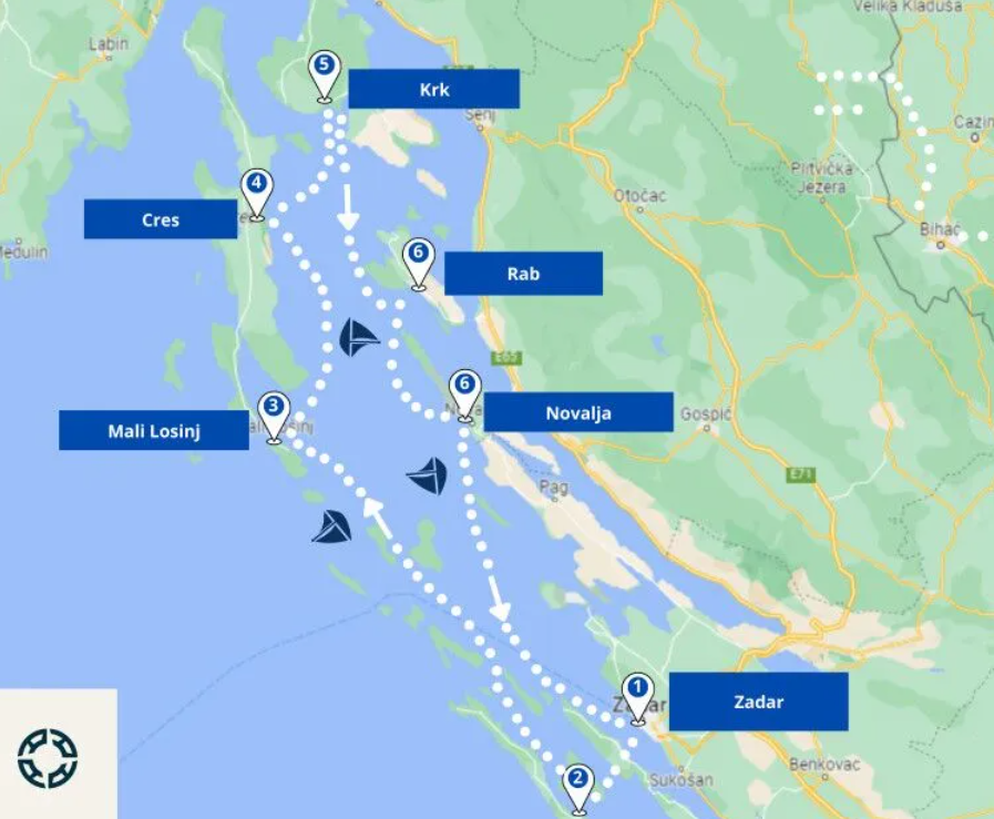 Naviga verso Rab, un’altra città romana fondata dall’imperatore Augusto in persona. In mattinata, ti consigliamo di passeggiare per la città e visitare i campanili del centro. Nel pomeriggio, salpa verso Novalja, un modesto villaggio di pescatori che è diventato una popolare località balneare. Qui non può mancare un tuffo nella baia di Jadra e nella sileziosa baia di Mata.